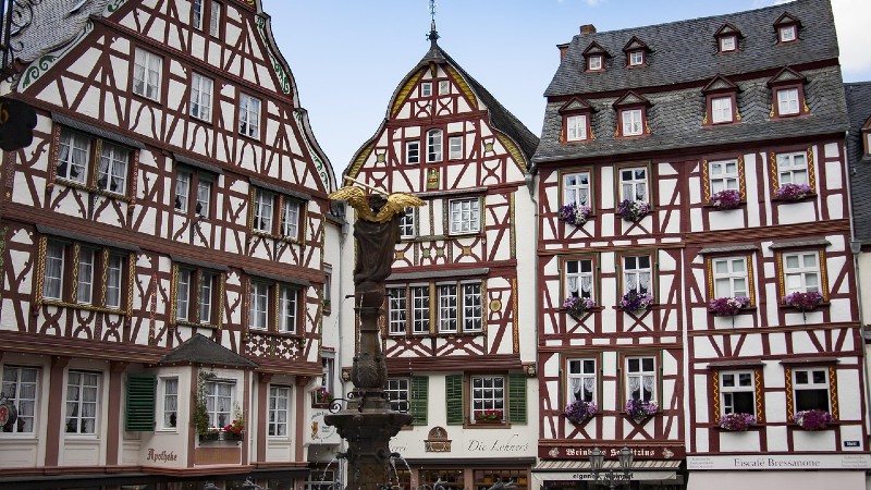 Onsdag. Efter frukost är det dags för en tur längs Rhen till Koblenz. Här ser vi Deutsches Eck där Rhen möter Mosel. Färden går vidare genom kända vindistrikt längs Moseldalen och vår väg kantas av de vackraste vyer. I den mysiga korsvirkesstaden Bernkastel ges tid för lunch och shopping. Sedan väntar även här provning av tre viner. Tillbaka i Rüdesheim väntar middagen.
